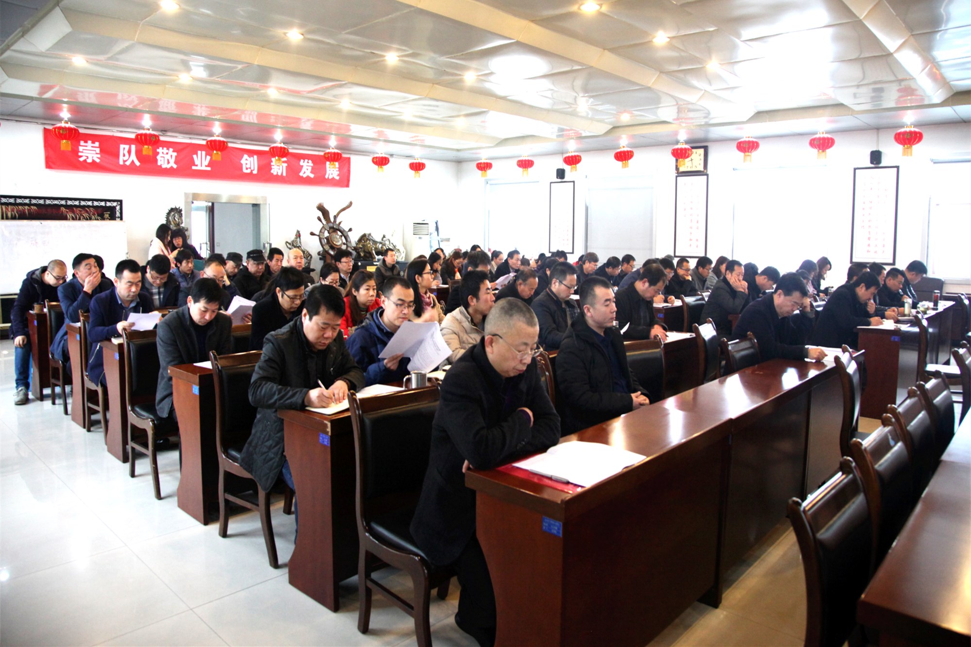 ? ? 會議號召,在新的一年里,廣大干部職工要以習近平新時代中國特色社會主義思想和黨的“十九大”精神為指導,牢固樹立?“四個意識”,堅定“四個自信”,堅決做到“兩個維護”,?深入貫徹落實集團公司2019年工作會議精神,進一步解放思想、轉變觀念,凝心聚力、開拓奮進,努力完成年度各項目標任務,為助力 “三個地礦”奮斗目標而不懈努力!