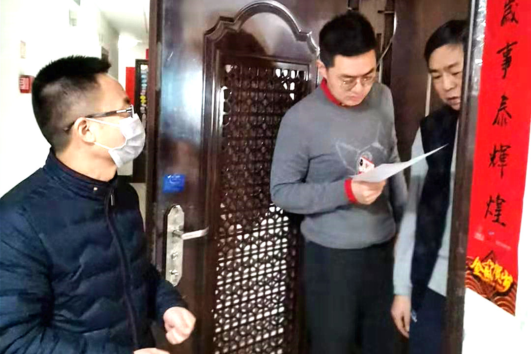 ??? 逐戶排查登記,把《關于做好新型冠狀病毒感染的肺炎疫情防控工作的緊急通知》送到居住在院內的150多戶家中;逐戶摸排登記發熱、湖北返回、密切接觸感染者等3類人員。對當前疫情防控進行宣傳,堅信黨的領導,不聽謠、不信謠、不傳謠,引導職工眾志成城,抗擊疫情。