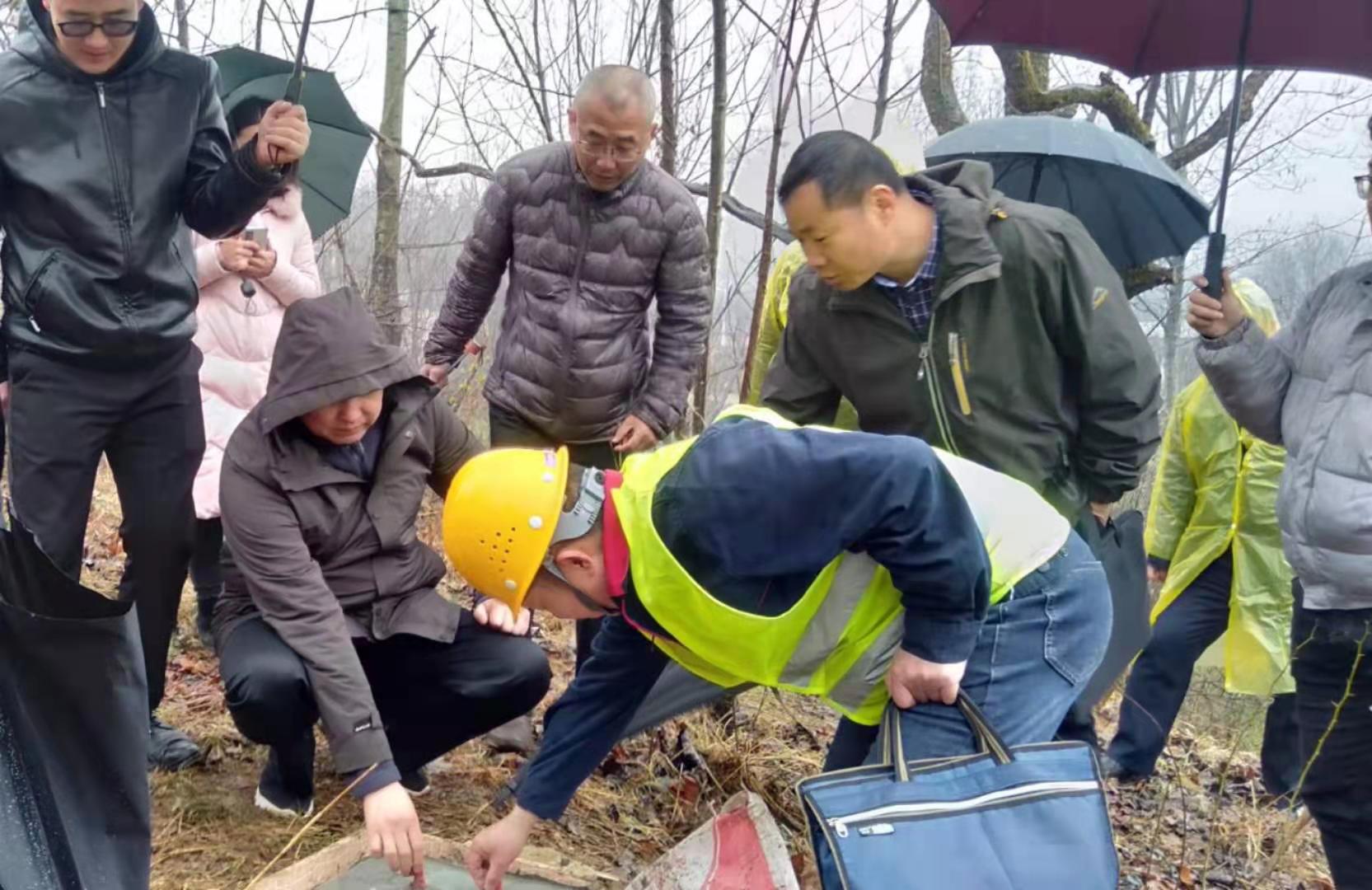 ? ? 為加快推進地質災害綜合防治體系建設各項目進度和了解推進過程中存在的問題,確保按時完成“雙清零”任務,2月25日,西安市自然資源和規劃局礦產資源保護監督管理處處長朱興國一行7人,冒雨前往周至縣竹峪鎮民主村,對我公司承擔的西安市地質災害綜合防治體系建設項目進行督導調研。公司黨政負責人李新勝、副總經理龐日軒,總經理助理梁元盟、項目負責人及相關技術人員陪同檢查。