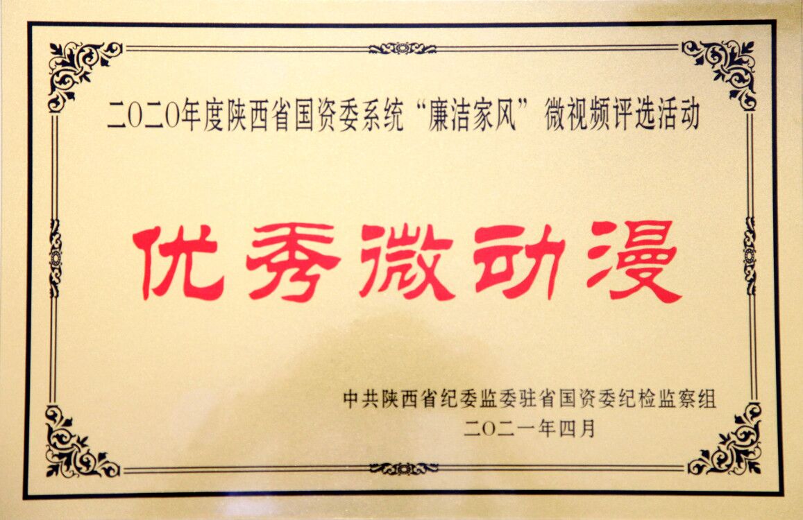 ? ? 物化探隊(duì)紀(jì)委制作的微動(dòng)漫《弘揚(yáng)好家風(fēng)?傳遞正能量》,在陜西省國(guó)資委系統(tǒng)“廉潔家風(fēng)”微視頻評(píng)選活動(dòng)中,榮獲中共陜西省紀(jì)委監(jiān)委駐省國(guó)資委紀(jì)委檢查組頒發(fā)的“優(yōu)秀微動(dòng)漫”獎(jiǎng)。