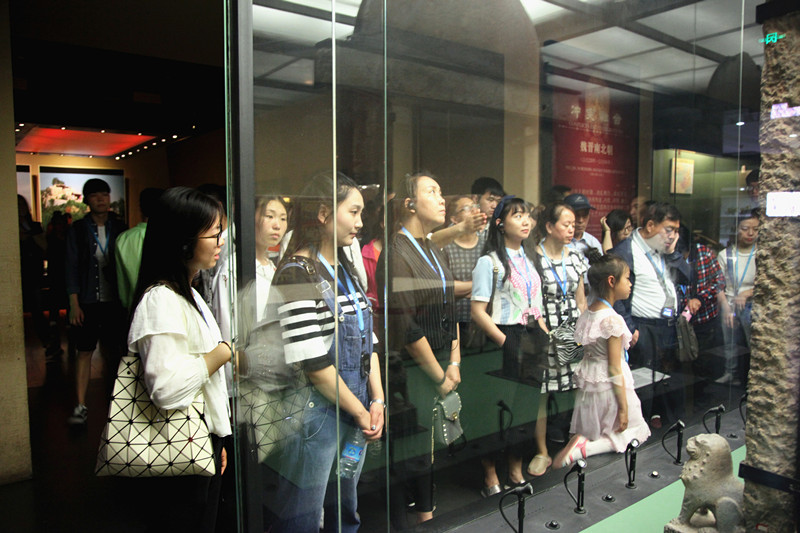 ? ? 被譽(yù)為“古都明珠,華夏寶庫(kù)”的陜西歷史博物館分三個(gè)展廳,分別從人類(lèi)起源、西周王都、大秦帝國(guó)、大漢雄風(fēng)、盛唐文化等歷史發(fā)展的順序?qū)Ξ?dāng)時(shí)各個(gè)時(shí)期的建筑構(gòu)件、生活情境,文化背景以壁畫(huà)、遺址模型、文物的陳列、照片等進(jìn)行再現(xiàn),團(tuán)員青年們通過(guò)參觀以及講解員詳實(shí)生動(dòng)的講解進(jìn)一步了解了陜西悠久的古代歷史和文化。