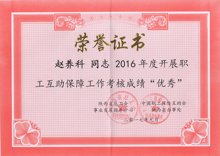 ? ?2017年1月13日,在陜西省職工互助保障工作會議上,對2016年度在陜西省職工互助保障工作中成績突出的先進(jìn)單位和優(yōu)秀個(gè)人進(jìn)行了表彰,我隊(duì)工會被陜西省總工會事業(yè)發(fā)展指導(dǎo)中心和中國職工保險(xiǎn)互助會陜西省辦事處聯(lián)合授予“先進(jìn)集體”榮譽(yù)稱號,授予工會主席趙養(yǎng)科同志“優(yōu)秀個(gè)人”榮譽(yù)稱號。