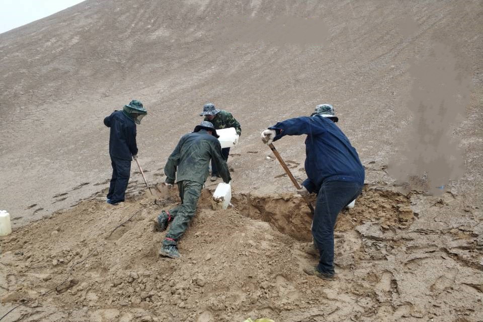 ? ? 該項目主要任務是,在已有地質工作的基礎上,通過遙感結合地質、物探勘查等工作方法,查明區內礦體產狀規模,然后進行深部驗證。本項目工作量激電中梯剖面27公里,由于項目時間緊、任務重,加上惡劣的氣候環境,項目組為了保質保量完成勘查任務,成立了夏日哈木項目黨小組,在黨員同志的帶領和感召下,隊員們迎難而上,勇于擔當,克服生活、工作的重重困難,快速推進工作進展,為項目順利實施提供了堅實的保障。
